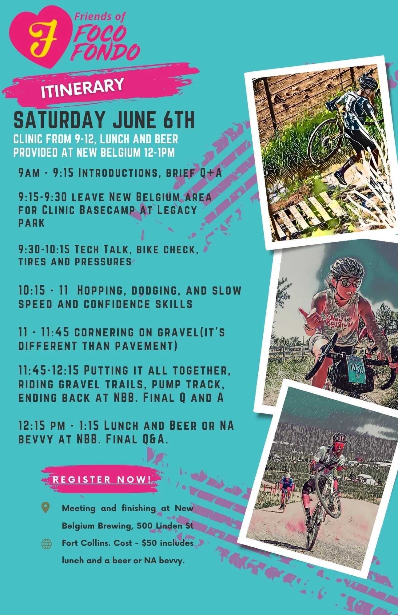 Friends of FoCo Fondo is hosting Year 3 of the Beginner’s Clinic, partnered up with Source Endurance! Designed for the gravel curious, this low-stress clinic will cover some gravel basic skills as well as equipment and maintenance basics. Only 35 spots are available.